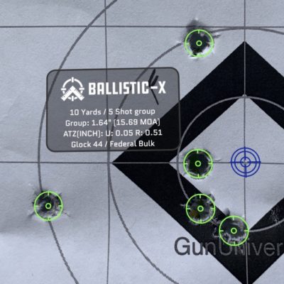 I shot a group of five shots for each brand of ammo standing off-hand at 10 yards. Not the most scientific method, but I’m a big believer in finding out what a gun actually does do vs. what it could/should do.