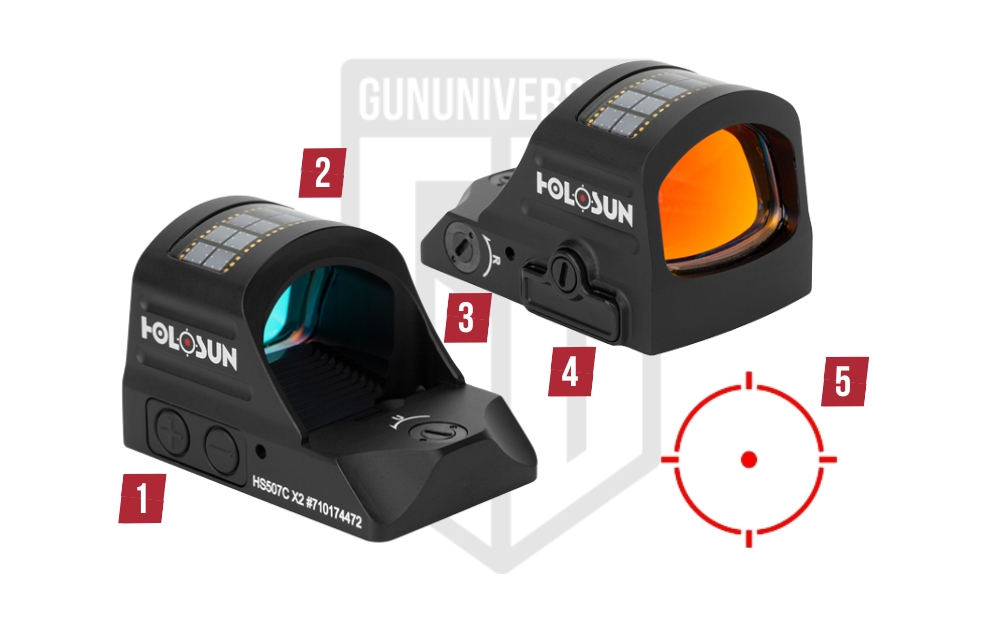 Powering the Holosun 507C is a single CR1632 battery. This battery provides a 10,000-hour runtime when set to its middle brightness setting. The red dot sight also offers a solar option, further extending its reliability. This not only extends the battery life but also ensures that the optic is always ready when you need it.