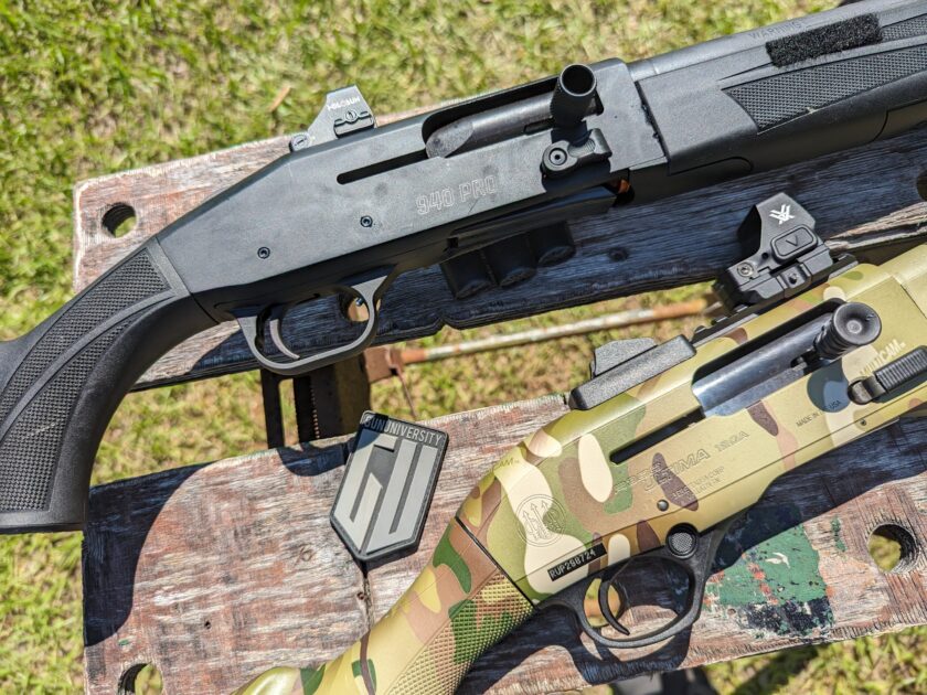 We live in 2024, and since both guns can fit red dots, I ran it with red dots. The A300 has an optics rail that makes it easy to toss on most red dot optics. The Mossberg 940 Pro features a slot cut into the receiver to mount optics with the Shield RMSc footprint directly to the gun, lowering the optic.