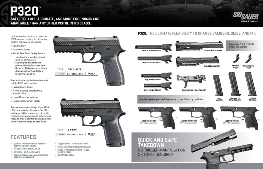 In fact, in an older brochure for the Sig P320, sig clearly contemplated a blade-style safety (see the top right trigger labeled “tabbed safety trigger” in this image below) but, for whatever reason, Sig chose not to use it.