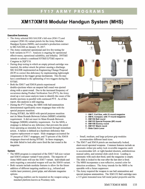 According to a FY17 summary of Army Programs for the Office of the Secretary of Defense (OSD), the issues with the Sig p320 variants during testing for the MHS program were described as: