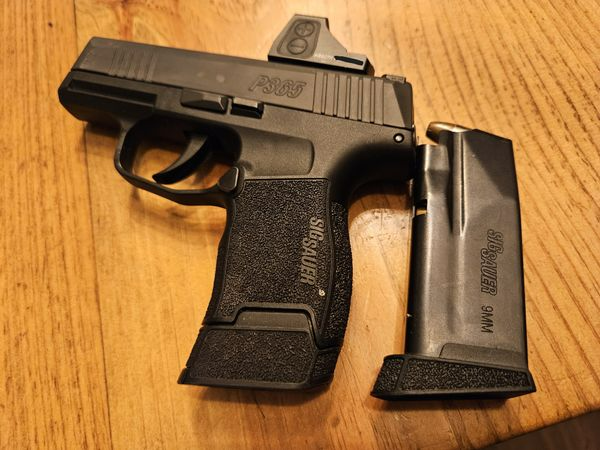 The SIG P365 became THE 9mm carry gun for users everywhere because of its 10+1 round count, or with an extended magazine, 12+1 single stack capacity. The +1 being the round in the chamber. Its popularity also came from it still shooting like a full size gun, even with its compact size. Sporting a stainless slide and slim polymer grip module, it shoots like a dream and is very comfortable to carry. This coming from a 5’2 120 lb female..