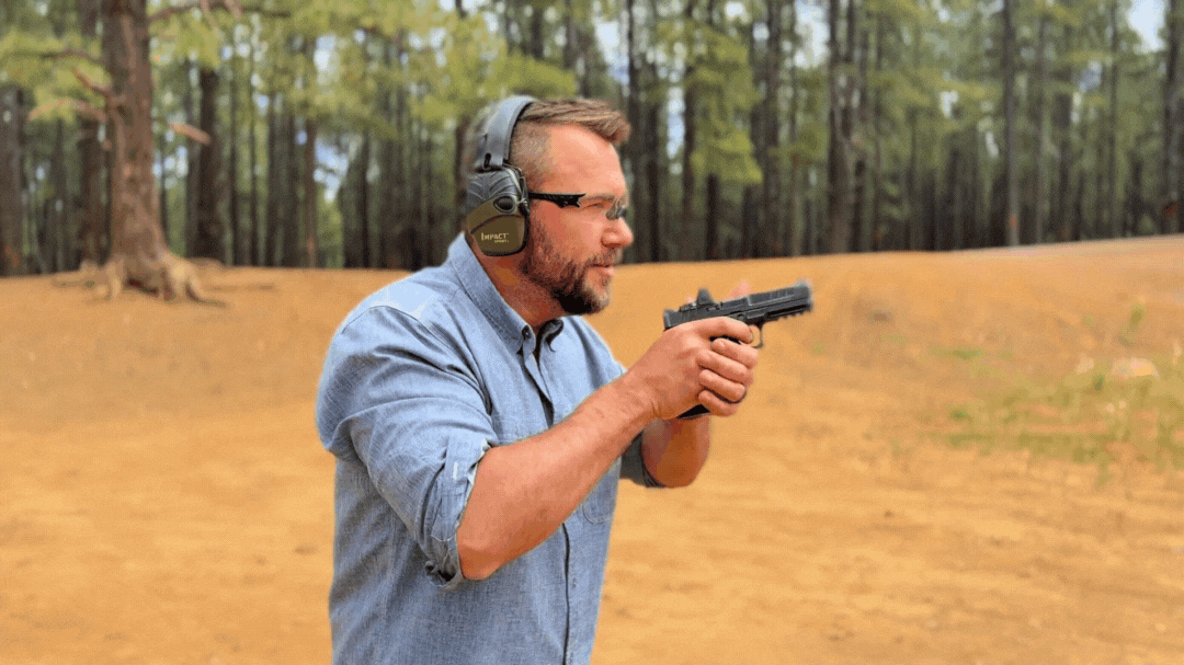 Now, it’s no competition pistol and, yes, there’s still clearly recoil, but for a full-size polymer striker fired pistol, it is a joy to shoot.