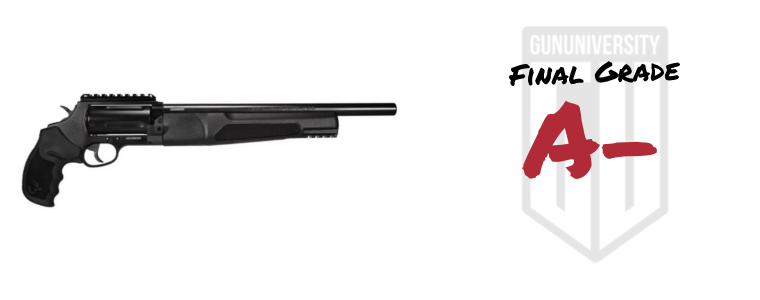 I’m rating this based on its performance with buckshot and .45 Colt. The gun shoots the little .45 Colt rounds like a little laser, and the buckshot also produces surprisingly nice patterns. |