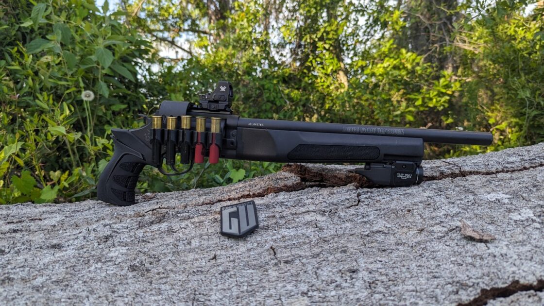 Legally, the Home Defender is a handgun, so the gun can be exceptionally short, and .410 offers low recoil. If the patterns are right, maybe the Home Defender could be worthy. The little gun holds five rounds of .410 and comes optics ready with a rail for a light. It’s fairly well-thought-out for home defense purposes.